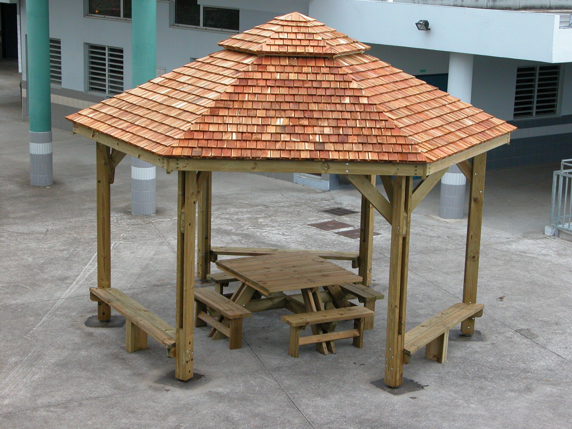 Création de terrasses en bois, pose de bardages, de garde-corps, construction de pergolas, kiosques, varangues et carports, réalisation de clôtures et portails, de mobiliers extérieurs, etc...